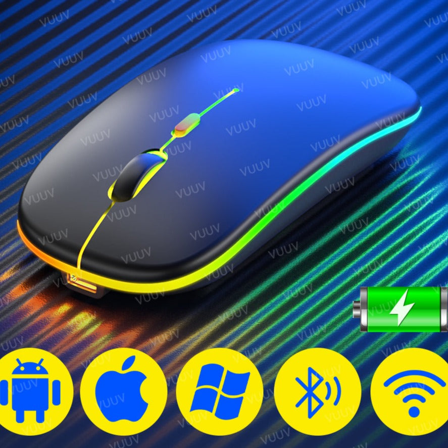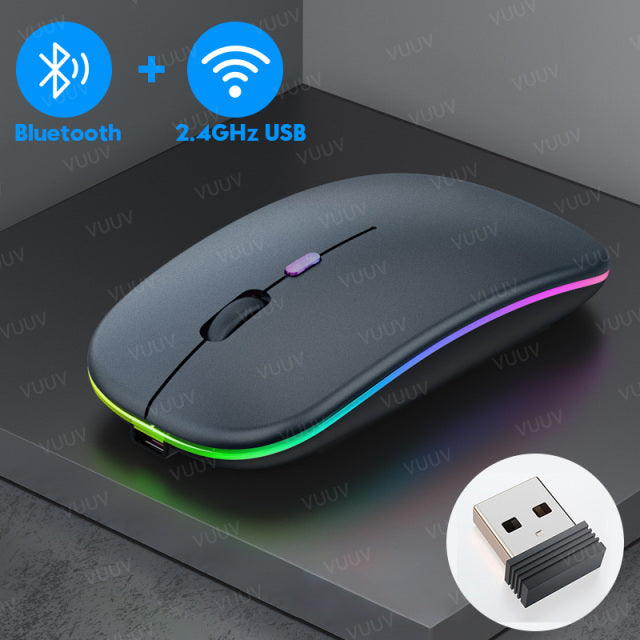 Bluetooth Wireless Mouse For Computer With RGB Backlight Rechargeable USB Mouse